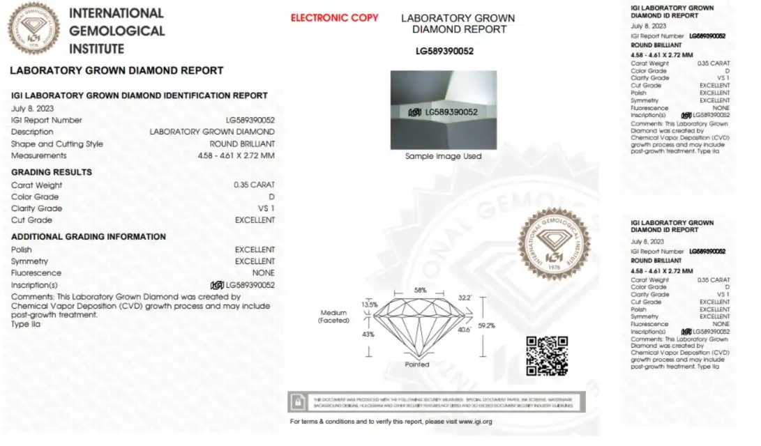 With this certification, you can have absolute confidence in the quality and value of your lab grown diamond. It not only attests to the diamond’s remarkable beauty but also guarantees transparency and credibility in your purchase, making it a truly exceptional choice for those who appreciate the finest in lab grown diamond jewelry.