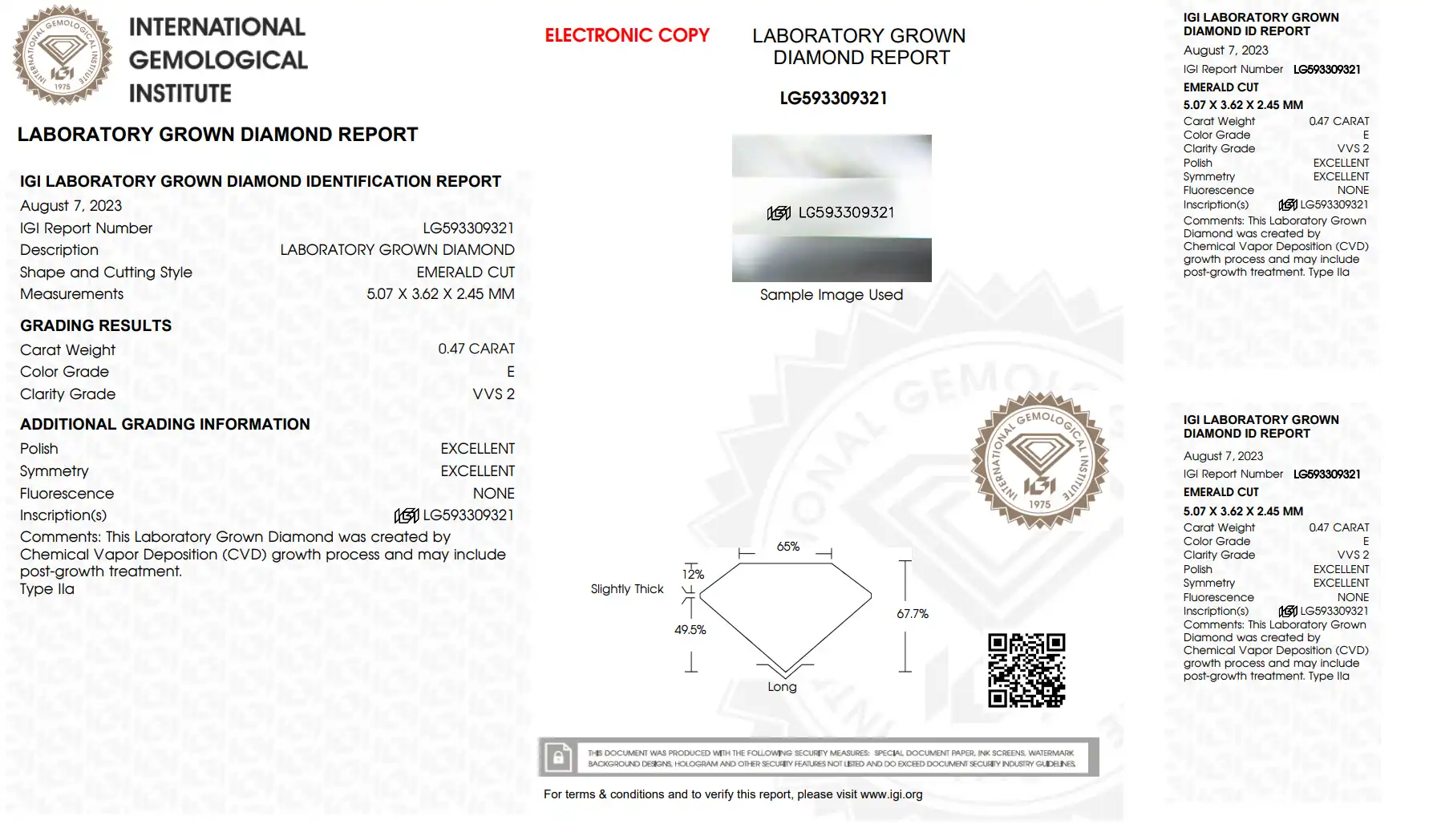 With this certification, you can have absolute confidence in the quality and value of your lab grown diamond. It not only attests to the diamond’s remarkable beauty but also guarantees transparency and credibility in your purchase, making it a truly exceptional choice for those who appreciate the finest in lab grown diamond jewelry.
