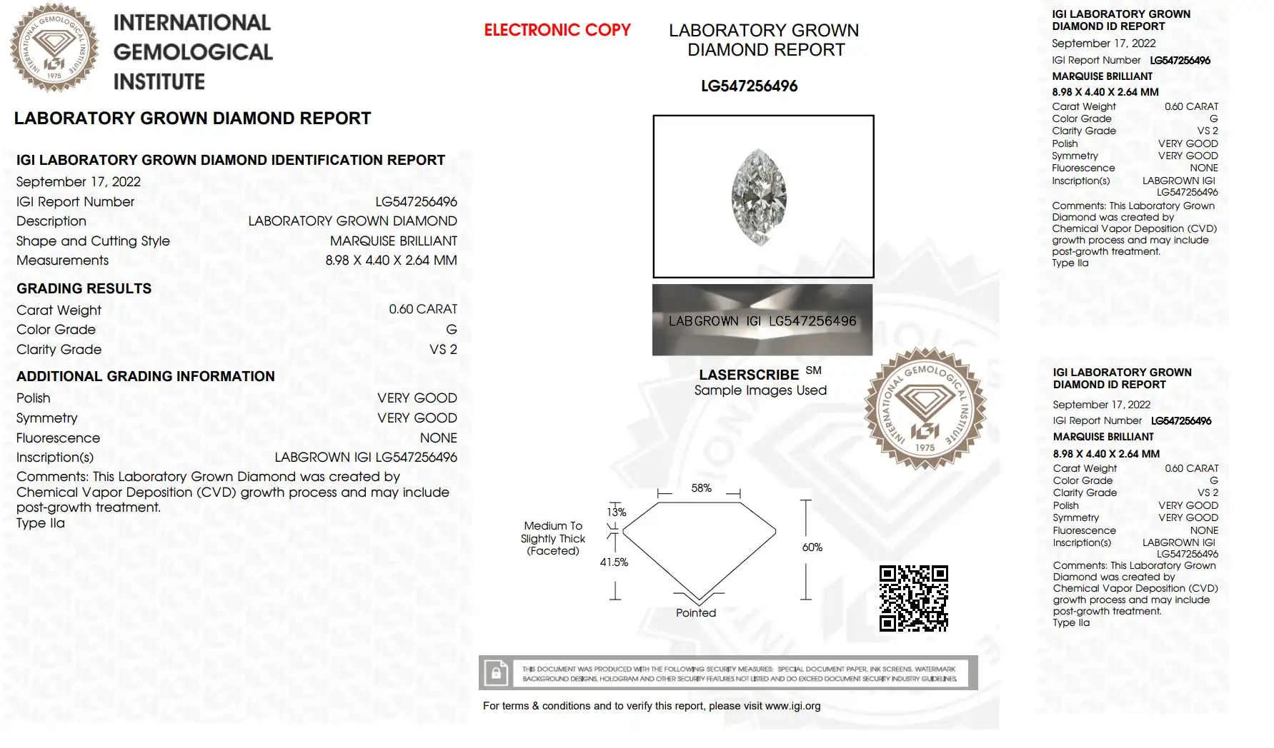 IGI Certified Laser Inscribed
