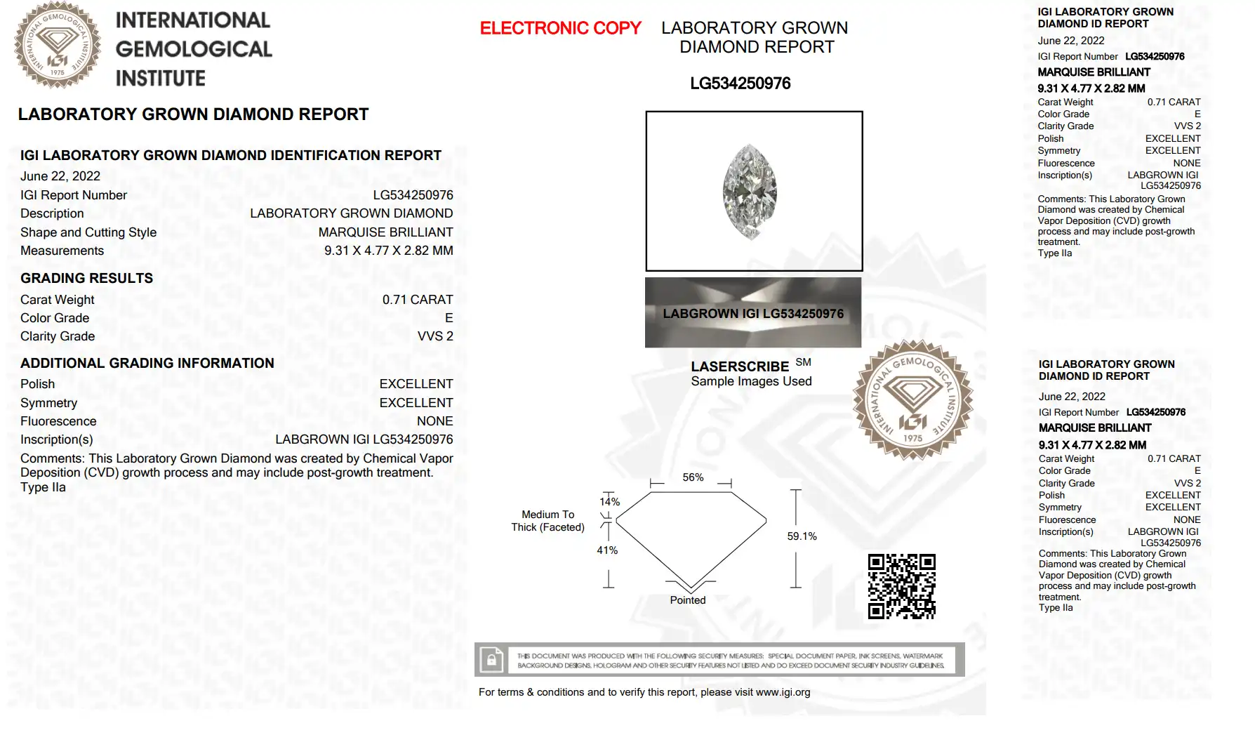 | IGI Certified | Laser Inscribed |