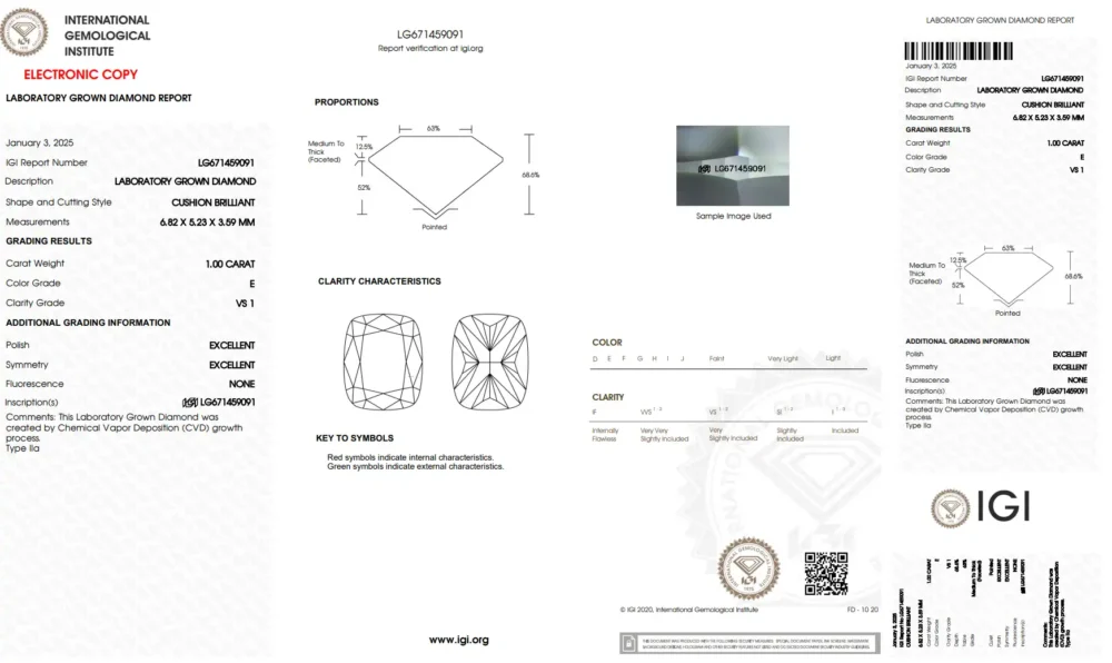 | IGI Certified | Laser Inscribed |