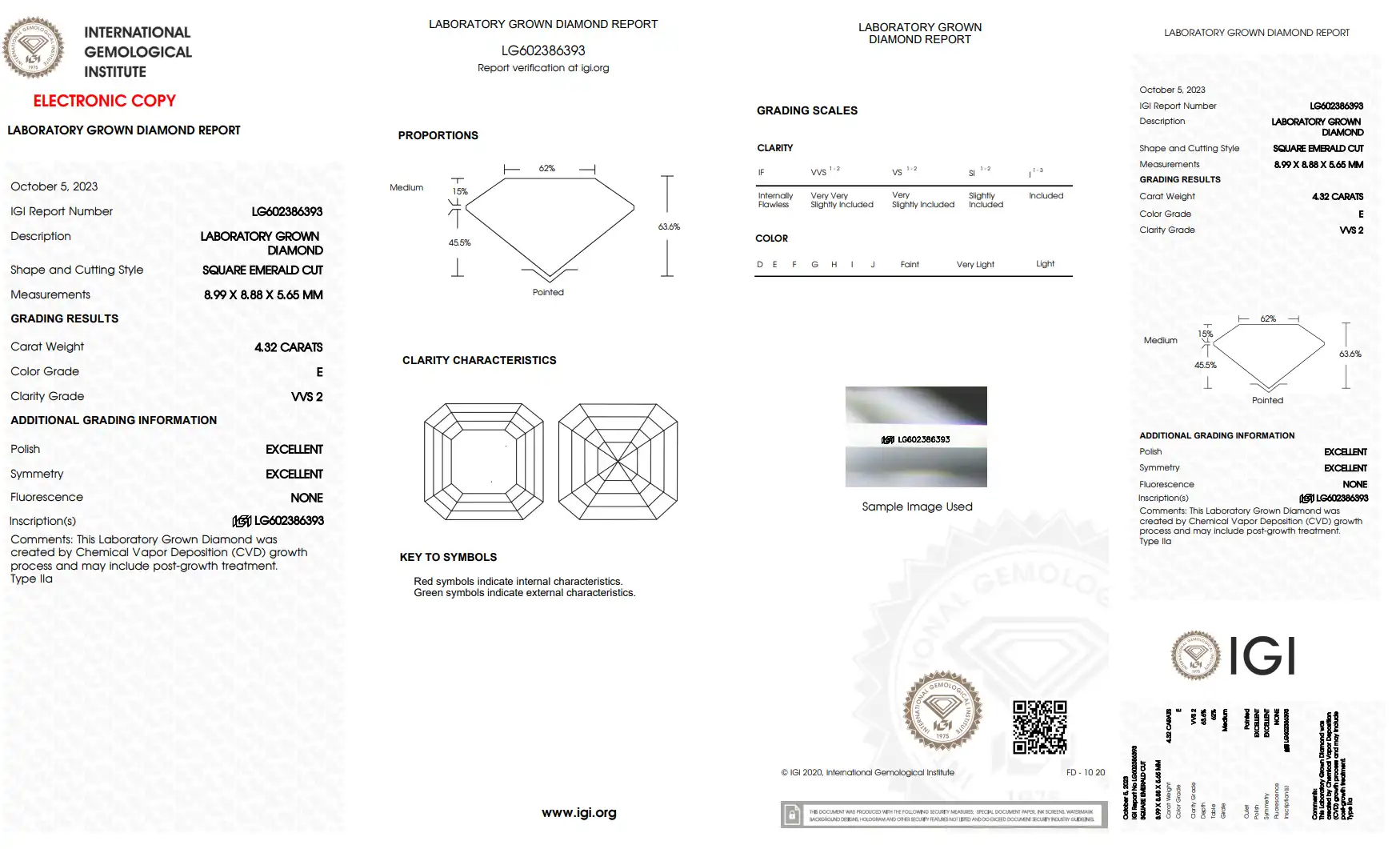 4.32 Carat CVD ASSCHER shape lab grown diamond E VVS2 IGI Certified
