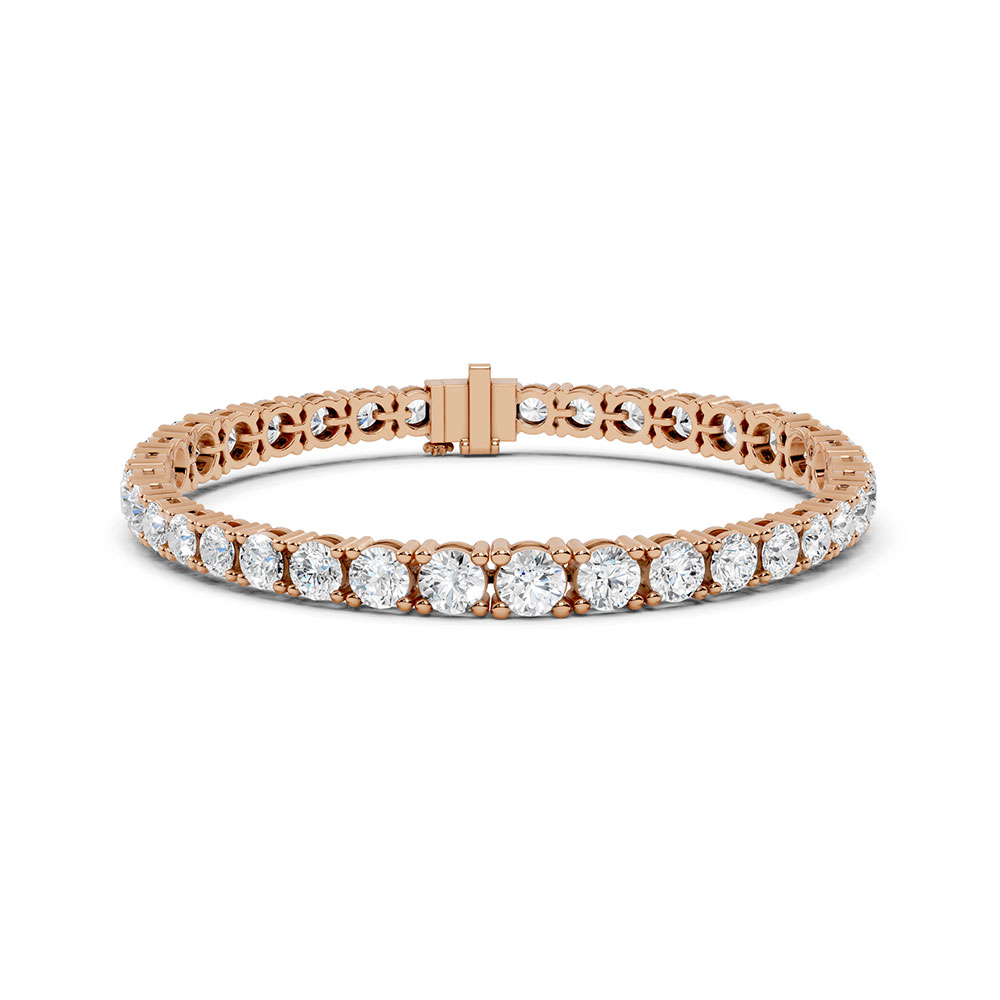 This extraordinary design is adorned with a stunning 13.20 carats of round-cut diamonds, selected in DEF color and VS–VVS clarity grades—a combination that guarantees exceptional brilliance, fire, and purity. Each diamond is meticulously matched for color and size, ensuring a harmonious and continuous sparkle throughout the entire length of the bracelet. The round brilliant cut, celebrated for its ability to maximize light reflection, brings unmatched luminosity and charm to the piece. All diamonds are certified, ensuring transparency, quality, and exceptional value.