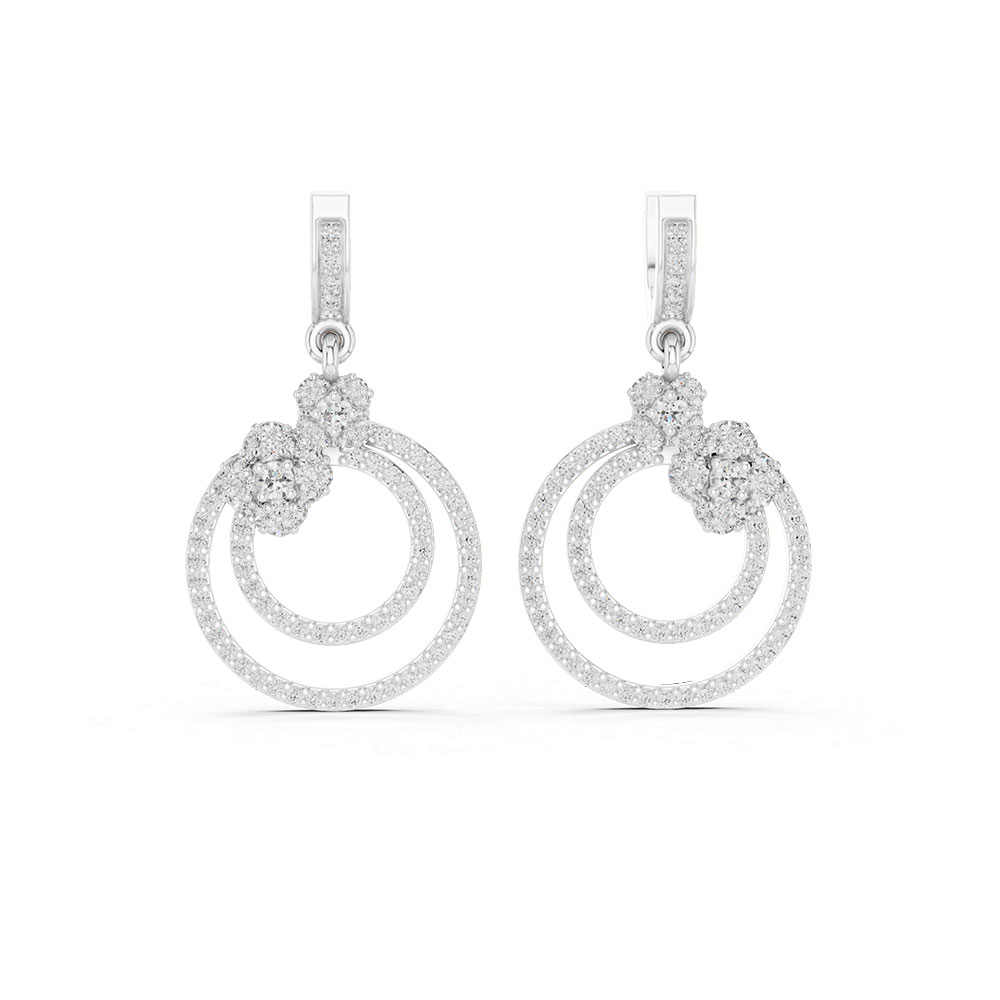 For those who prefer a sleek and modern white-metal look, the earrings are also available in 925 silver with rhodium plating. The rhodium finish enhances brightness, resists tarnishing, and provides a refined mirror-like shine, while maintaining the same diamond quality and striking design aesthetic.