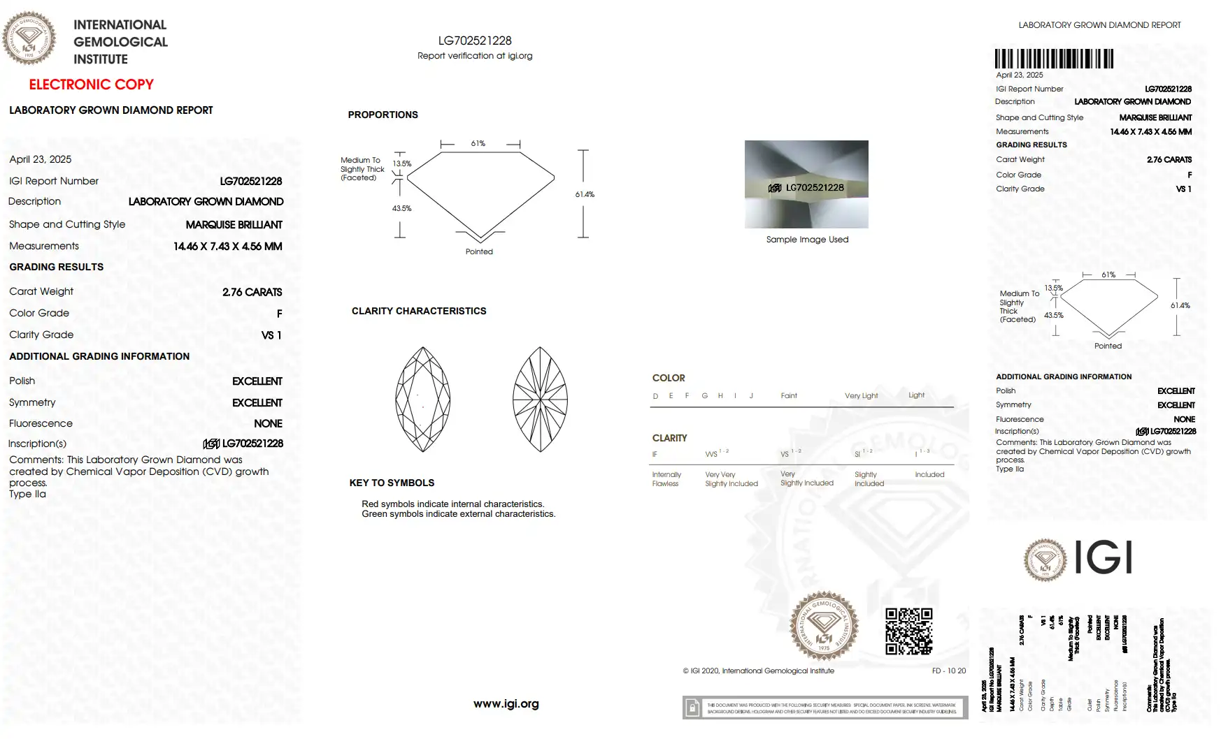 | IGI Certified | Laser Inscribed |