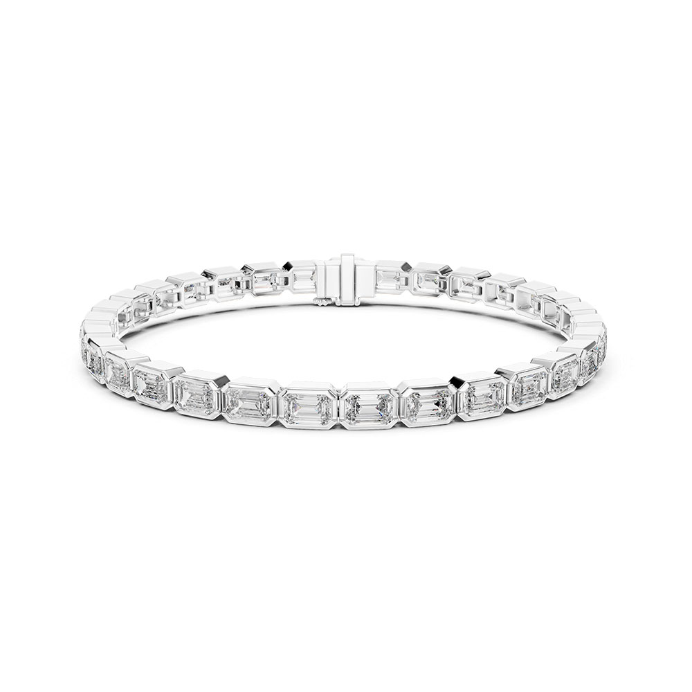 This striking piece is adorned with 9.3 carats of EF-color, VS–VVS clarity certified diamonds, each chosen for superior luminosity and clarity. Emerald-cut stones are known for their understated glamour—their step-cut facets produce a soft, sophisticated glow rather than a fiery sparkle, giving the bracelet a poised and graceful aesthetic. The uniformity of the diamonds, paired with expert setting techniques, ensures a smooth, seamless flow of brilliance across the entire length of the bracelet.