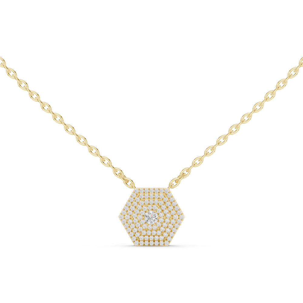 Elevate your style with the HexaGlow Diamond Pavé Pendant, a captivating blend of modern geometry and timeless sparkle. Designed in an elegant hexagonal silhouette, this pendant showcases a brilliant pavé arrangement that enhances the natural fire and scintillation of each diamond. Its structured yet graceful form makes it a perfect accessory for both everyday sophistication and special occasions.