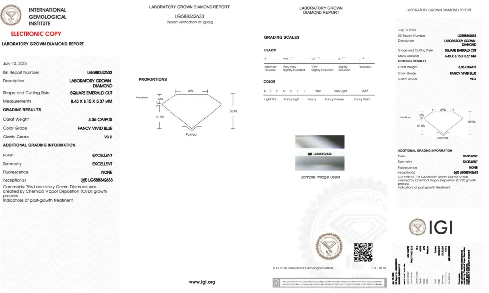 1 review for IGI Square Emerald 3.36 Carat Vivid Blue Lab Grown Diamond VS2 Quality