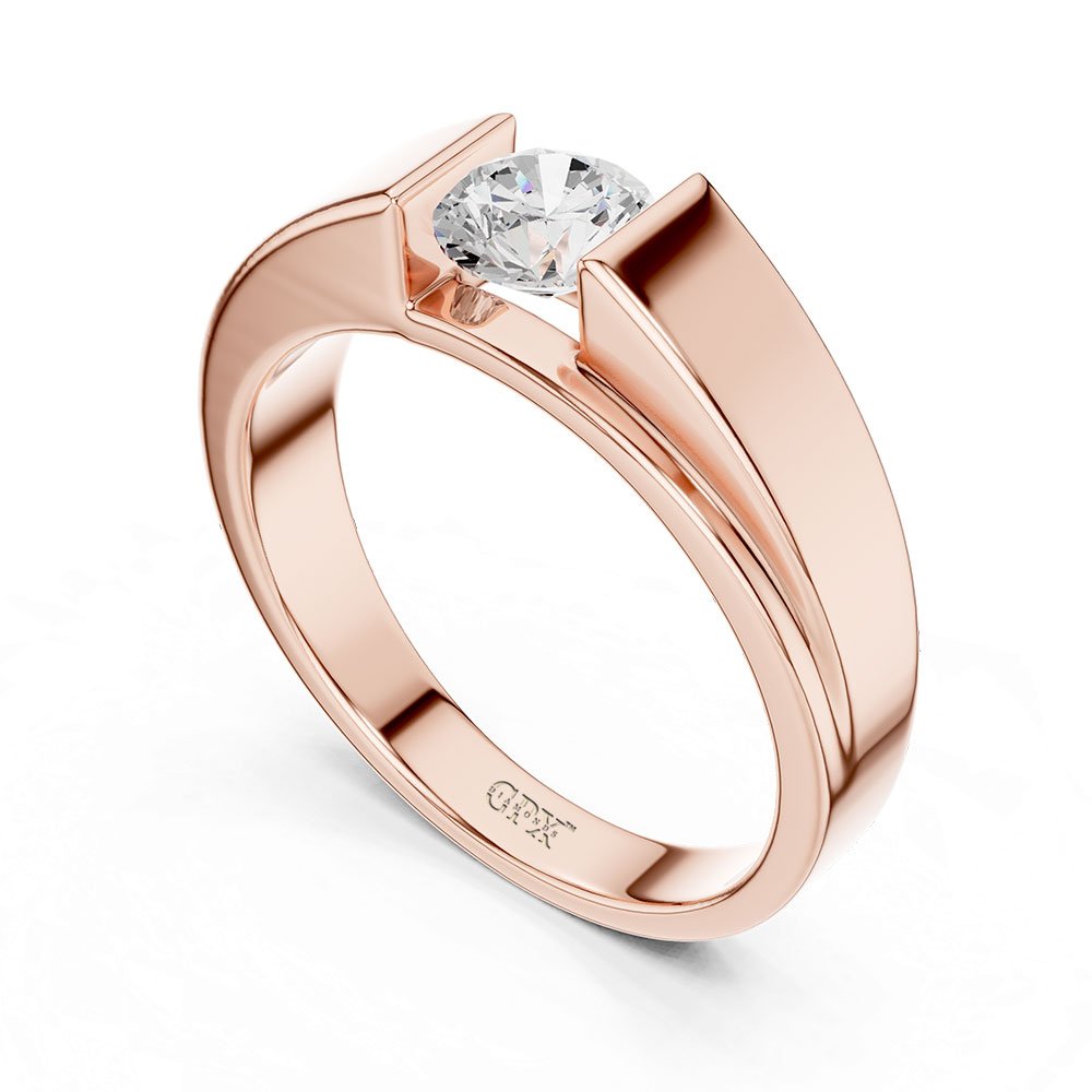 The channel setting securely holds the diamond while offering a sleek, streamlined appearance. This setting not only enhances durability but also protects the diamond, making the ring practical for everyday wear without compromising on luxury. The balanced proportions and thoughtful detailing ensure the ring looks equally impressive from every angle.