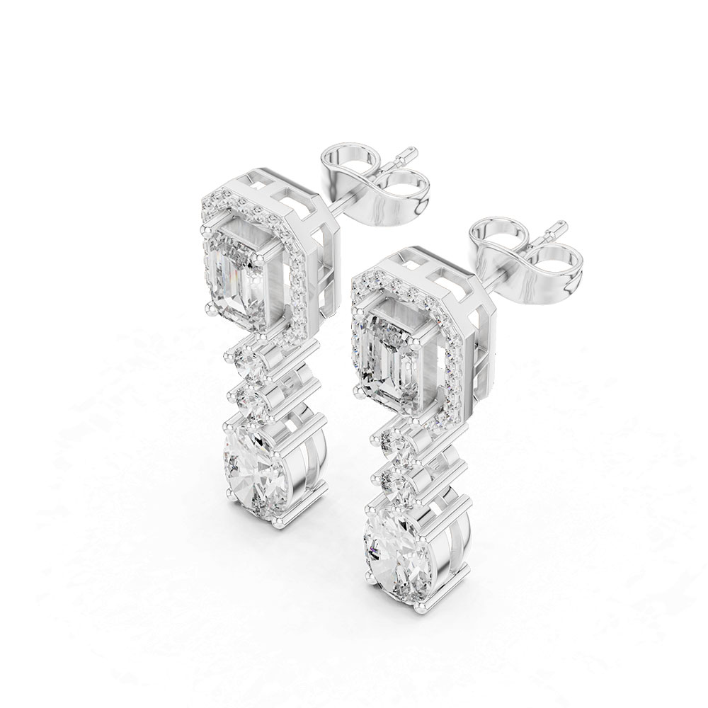 Mixed Cut Diamond Drop Earrings – Round Oval Emerald Cuts