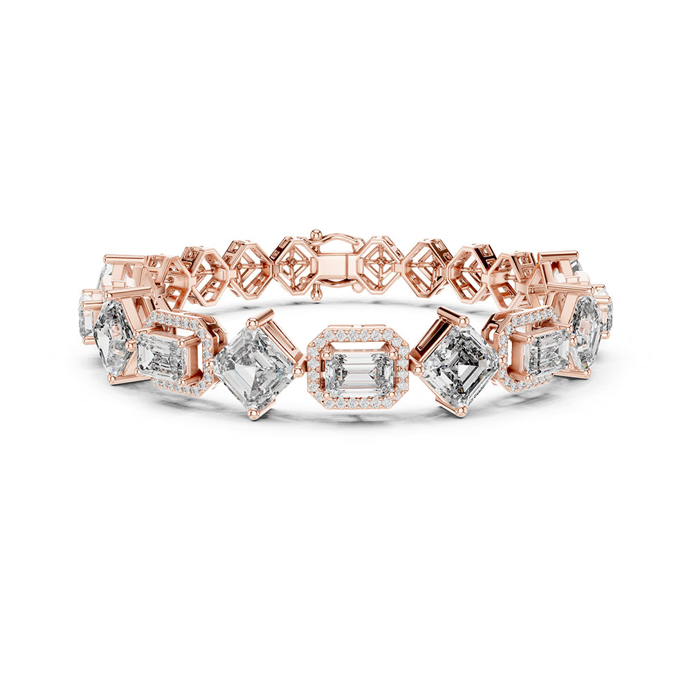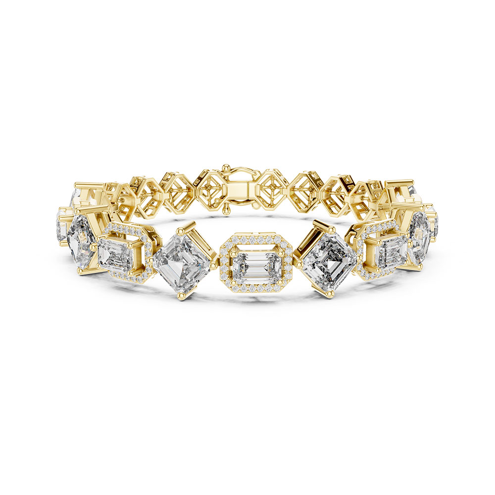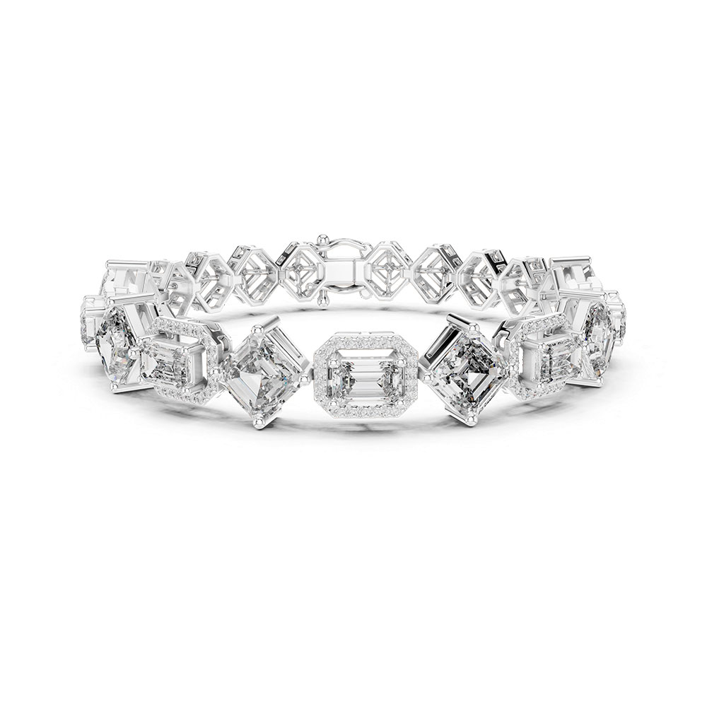 The bracelet features an impressive 12.04 carats of lab-grown diamonds in DEF color and VS–VVS clarity, offering remarkable whiteness and exceptional purity. Each stone is certified, guaranteeing authenticity and precision craftsmanship. The mixed cuts — ranging from step cuts to brilliant cuts — create a beautiful balance of sparkle and structure, giving the piece a sophisticated and high-end appearance that sets it apart from standard tennis bracelets.