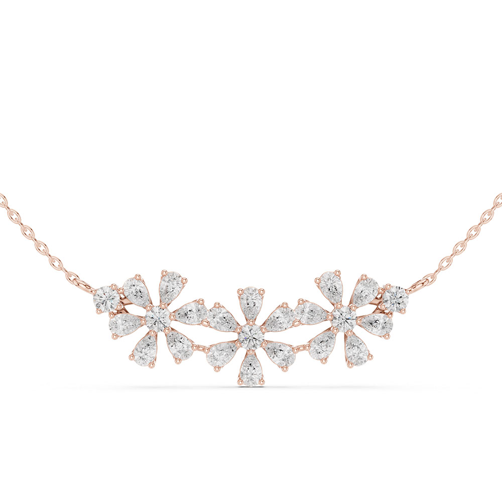 This elegant Pear-Cut Crystal Flower Dainty Necklace is a celebration of refined femininity and timeless craftsmanship. Designed with a delicate floral inspiration, the necklace features pear-shaped diamonds arranged to resemble a blooming crystal flower, creating a soft yet striking visual appeal. The pear cut adds graceful movement and brilliance, allowing light to reflect beautifully with every turn, while the floral composition lends a romantic and nature-inspired charm.