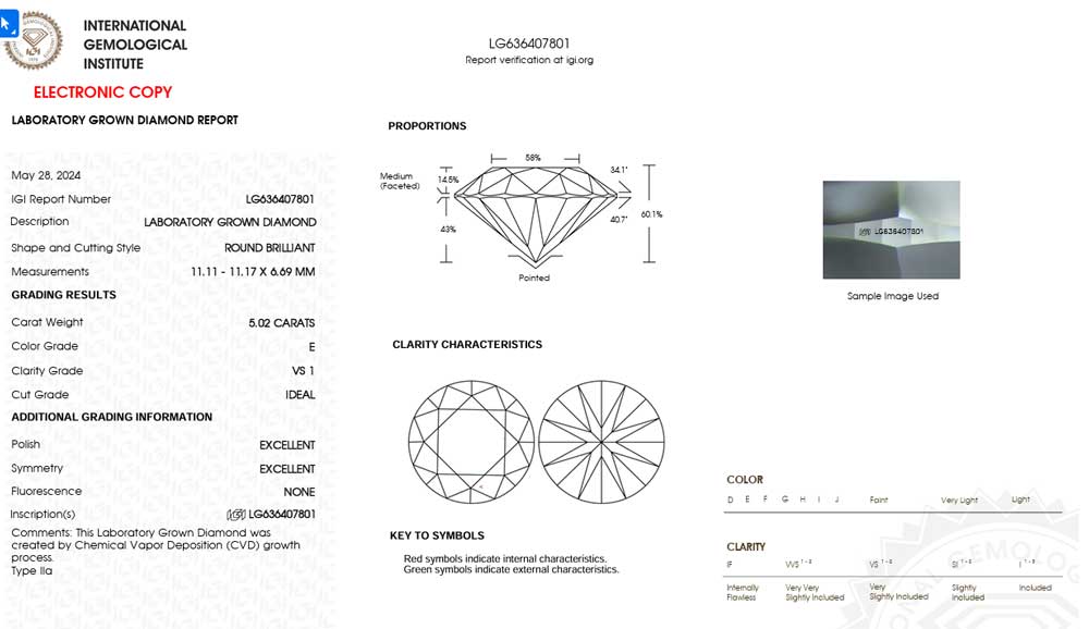 Round 5.02 Carat (E/VS1) Lab Grown Diamond