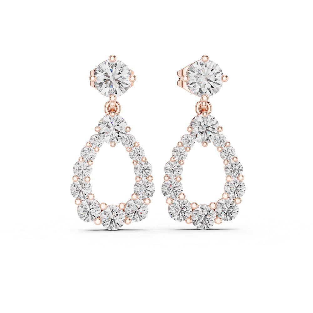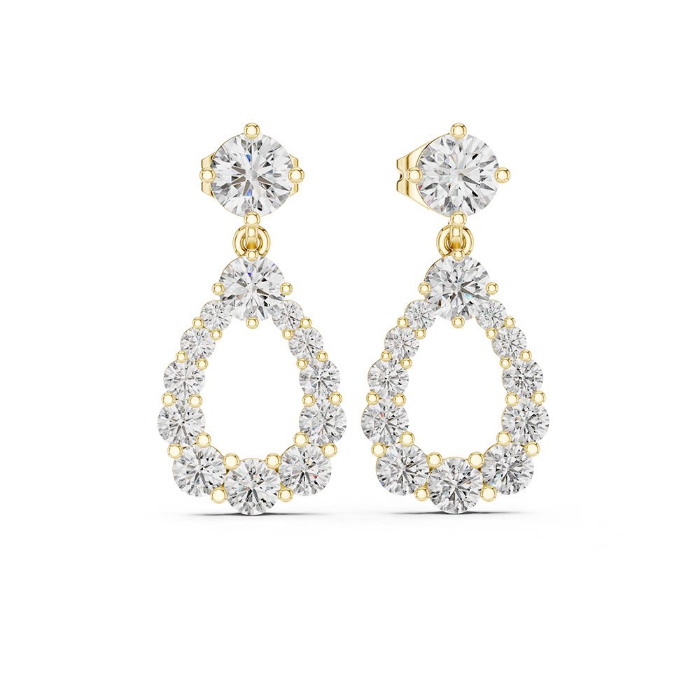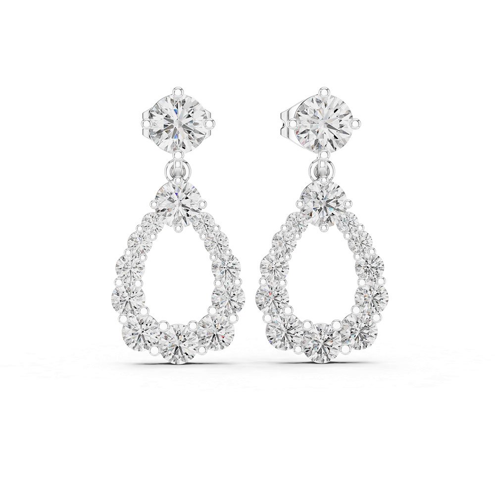 Set with an impressive total of 4.00 carats of lab-grown round brilliant diamonds (LGD), these earrings are designed to maximize light reflection and brilliance. The classic round cut is renowned for its unmatched sparkle, and when arranged in a flowing teardrop form, it creates a captivating cascade of light that draws attention without appearing overstated.